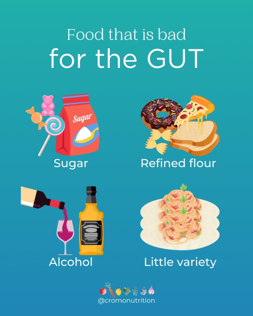 Here you will find my top-four foods and habits that are good or bad to our gut.